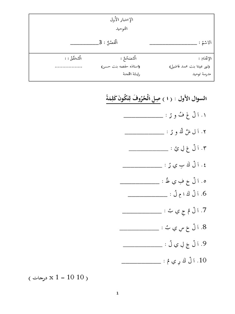 Ujian Kedua Tauhid Tahun 3 Worksheet